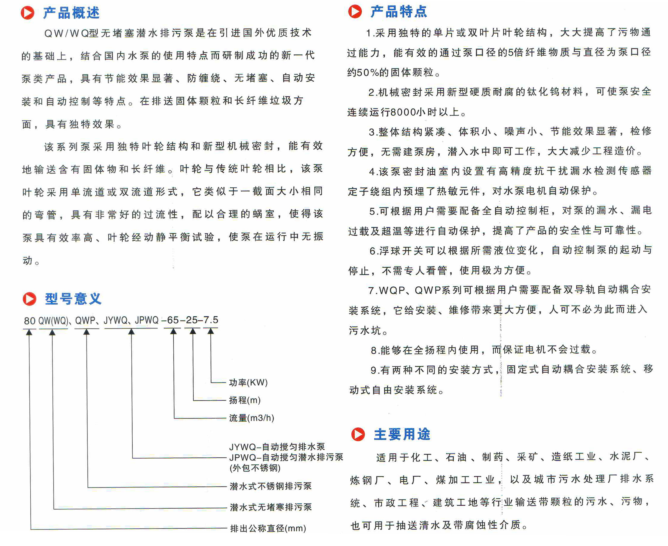 上一篇:JYWQ型自動(dòng)攪勻潛水排污泵 下一篇:WQ-QW固定式-移動(dòng)式潛水排污泵